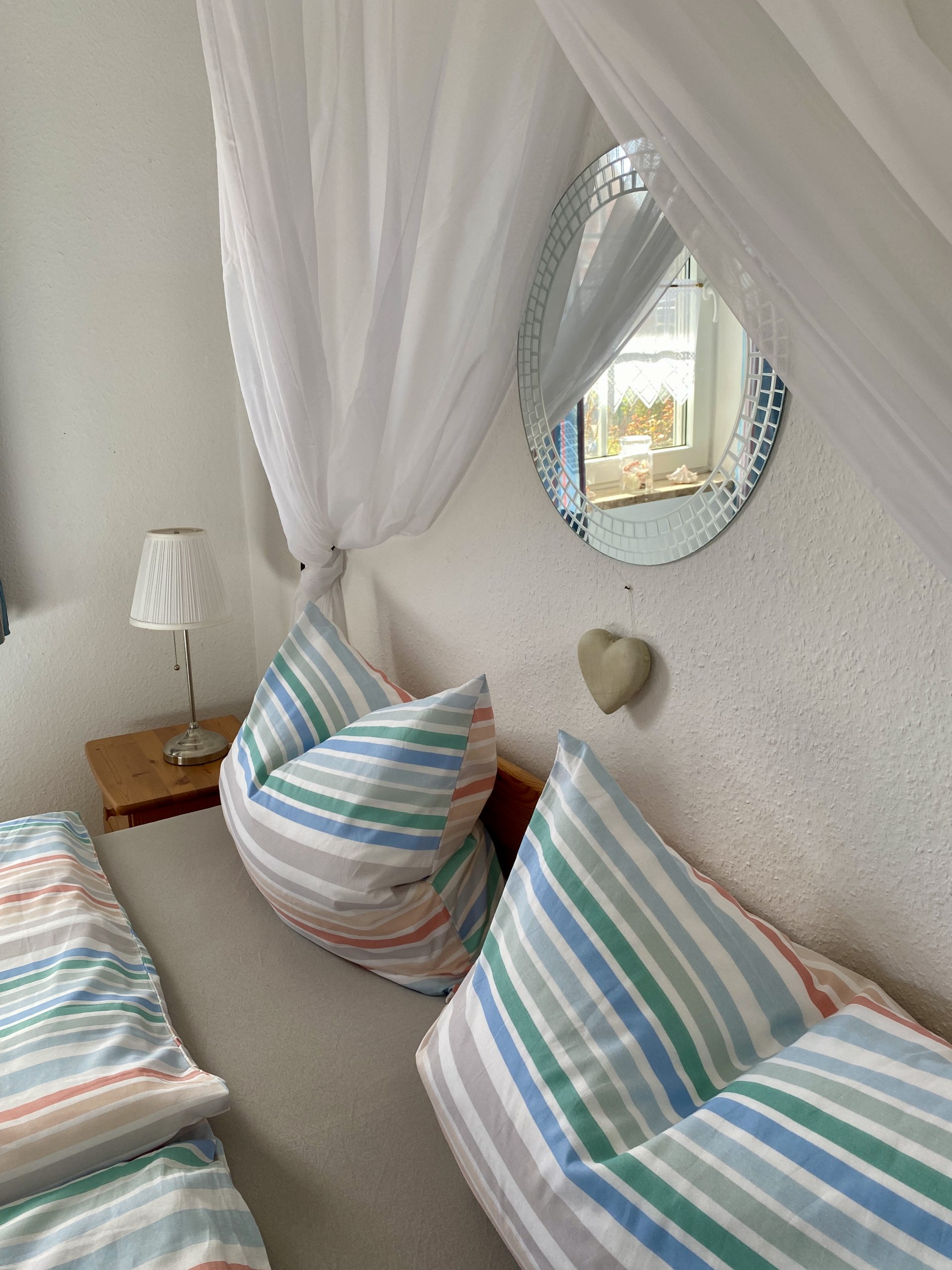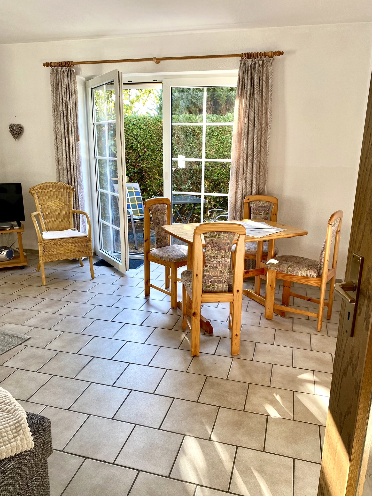 WOHNUNG 2 Wohnung mit Terrasse Flur Wohnbereich Deco Essbereich Terasse Küche Bad Kissen Doppelbett Einzelbett ÜBERBLICK 50 m² Schlafzimmer mit 1 Doppelbett, 2 Einzelbetten max. 4 Gäste Badezimmer Terrasse AUSSTATTUNG Nichtraucher Haustiere nicht erlaubt Wlan SAT-TV Spülmaschine Fahrradschuppen Parkplatz VOM GAST MITZUBRINGEN Bettwäsche und -laken Handtücher Geschirrtücher ANREISE / ABREISE ab 15 Uhr / bis 10 Uhr PREISE Zwischensaison : 65€ / TagHauptsaison : 80€ / TagEndreinigung : 50€ OSTSEECARD Zwischensaison : 1,50€ / Tag und Pers.Hauptsaison : 2,30€ / Tag und Pers. Belegungskalender